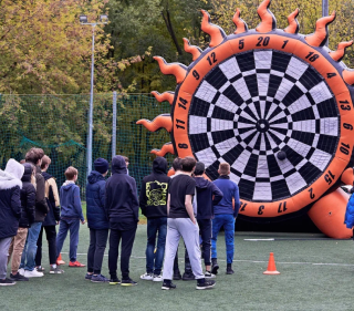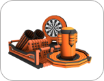 А для тех, кто хочет крутой комплект, но подешевле – в наличие есть надувные чёрно-оранжевые препятствия и их цветные аналоги.