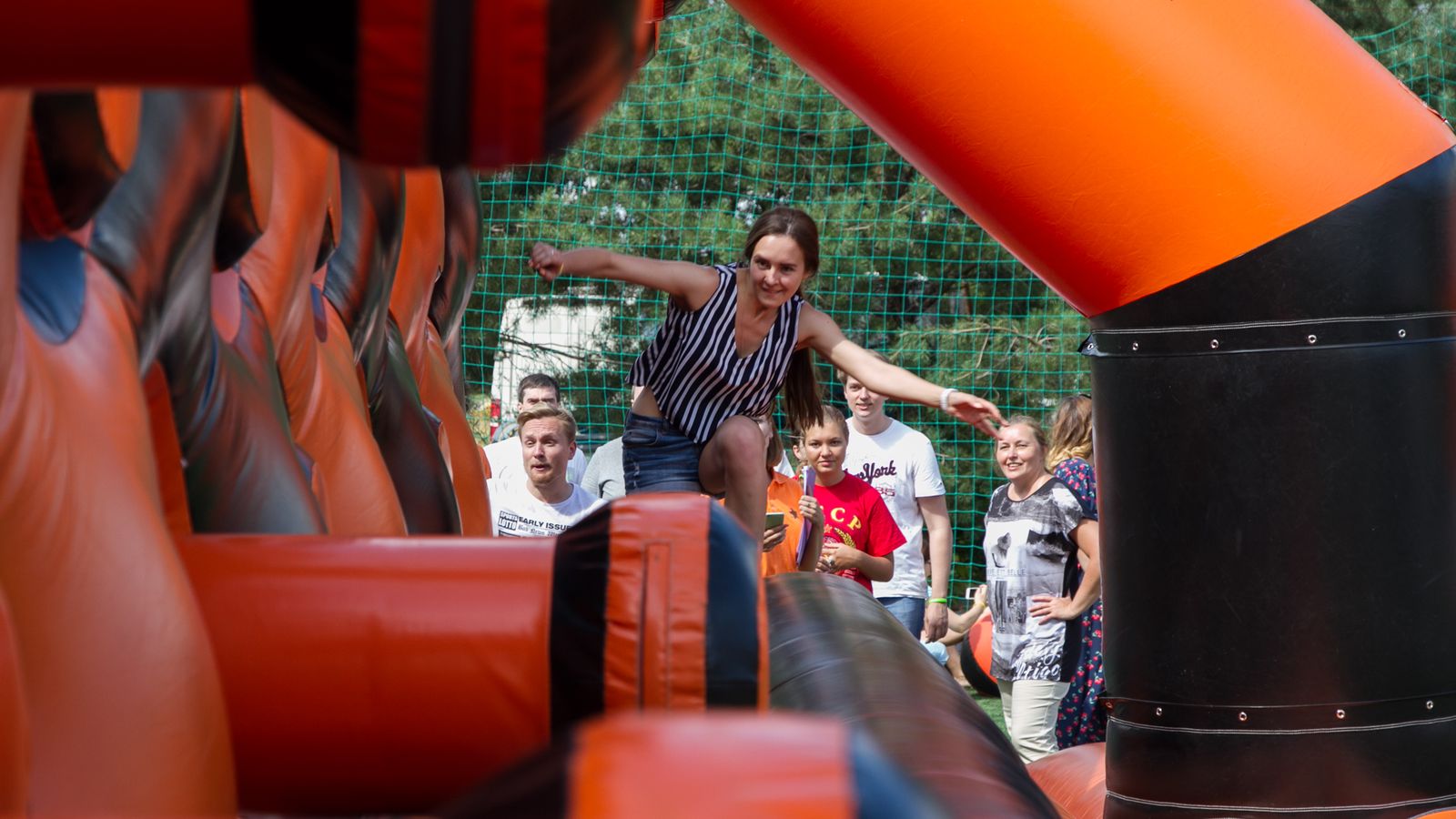 А для тех, кто хочет крутой комплект, но подешевле – в наличие есть надувные чёрно-оранжевые препятствия и их цветные аналоги.