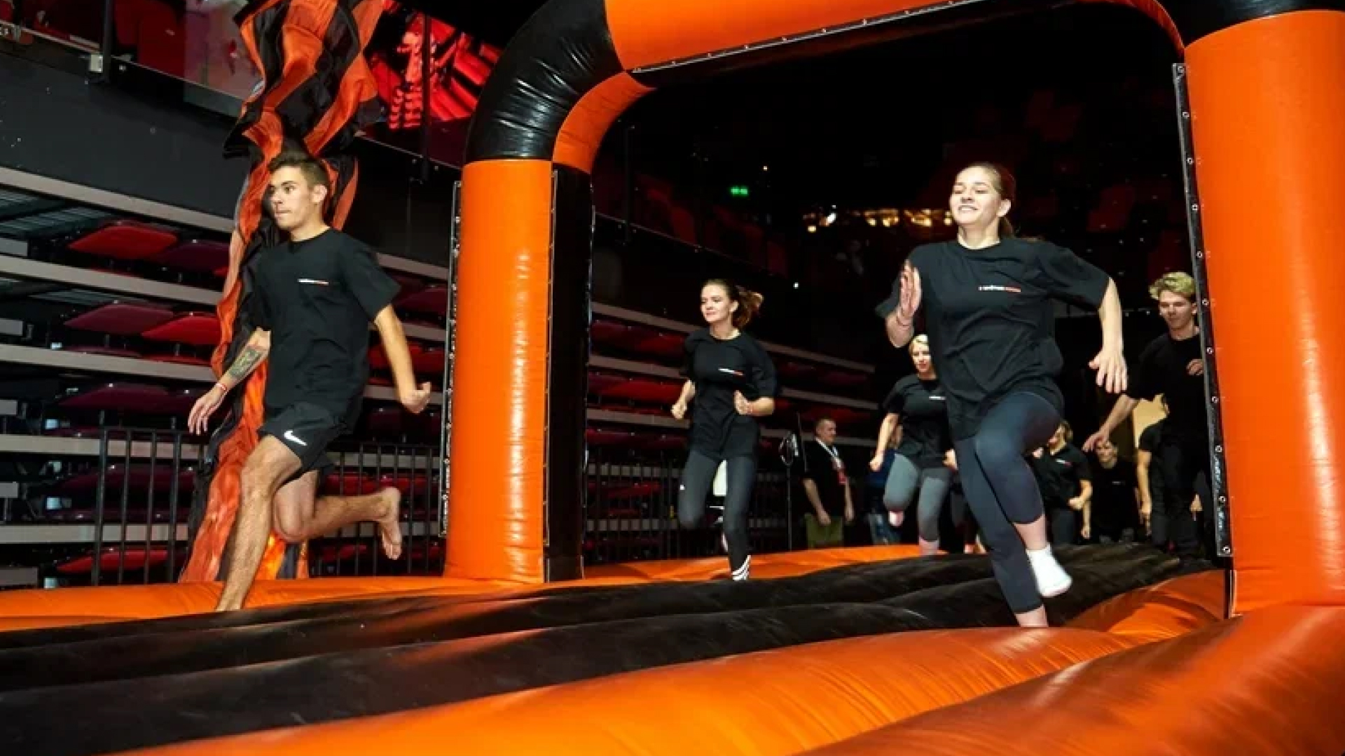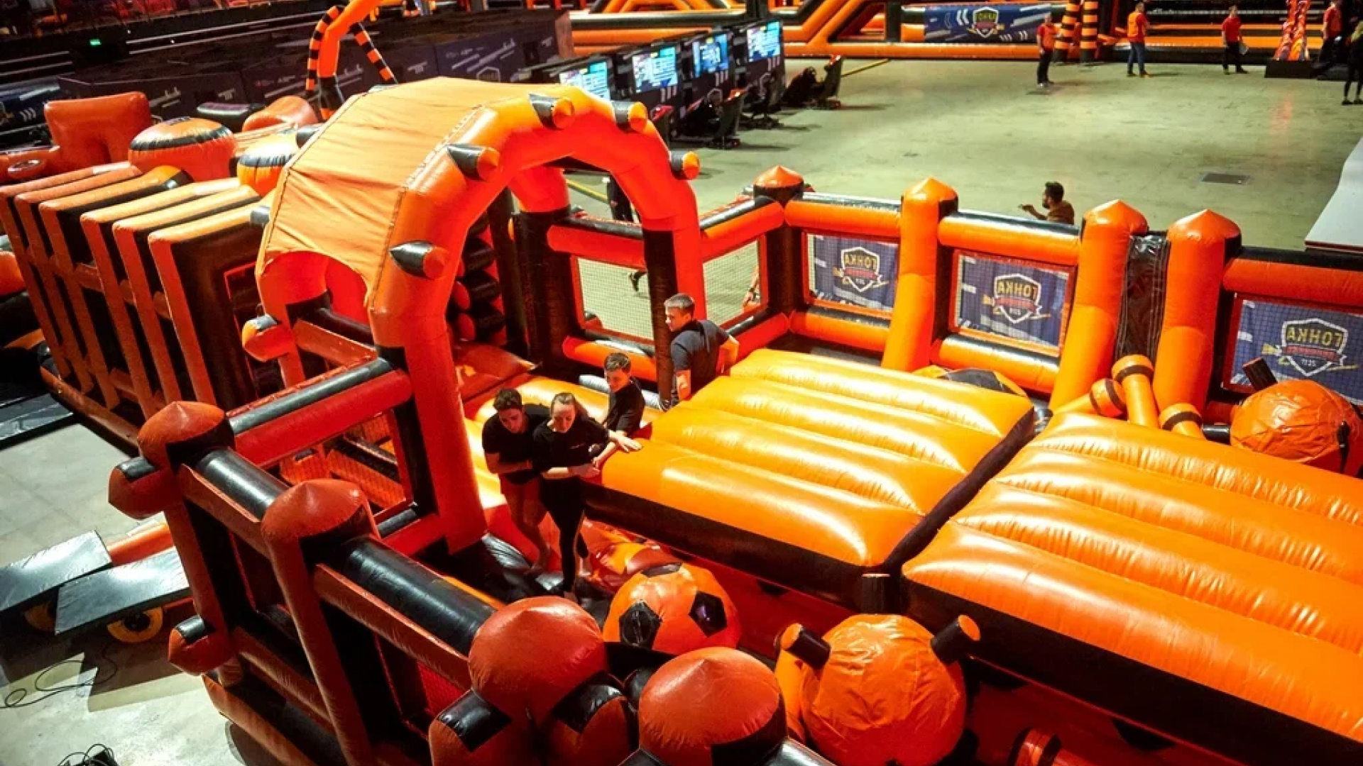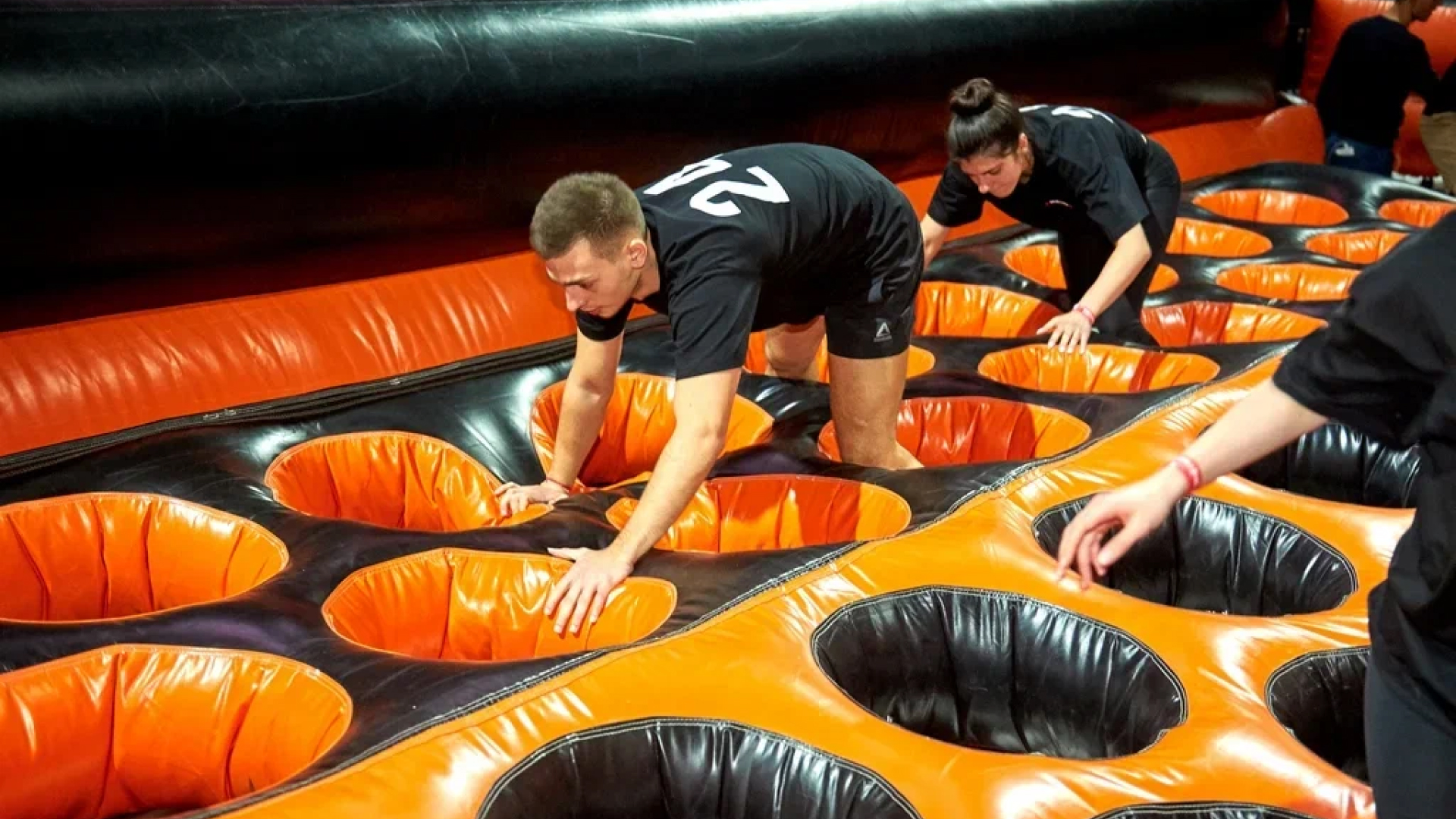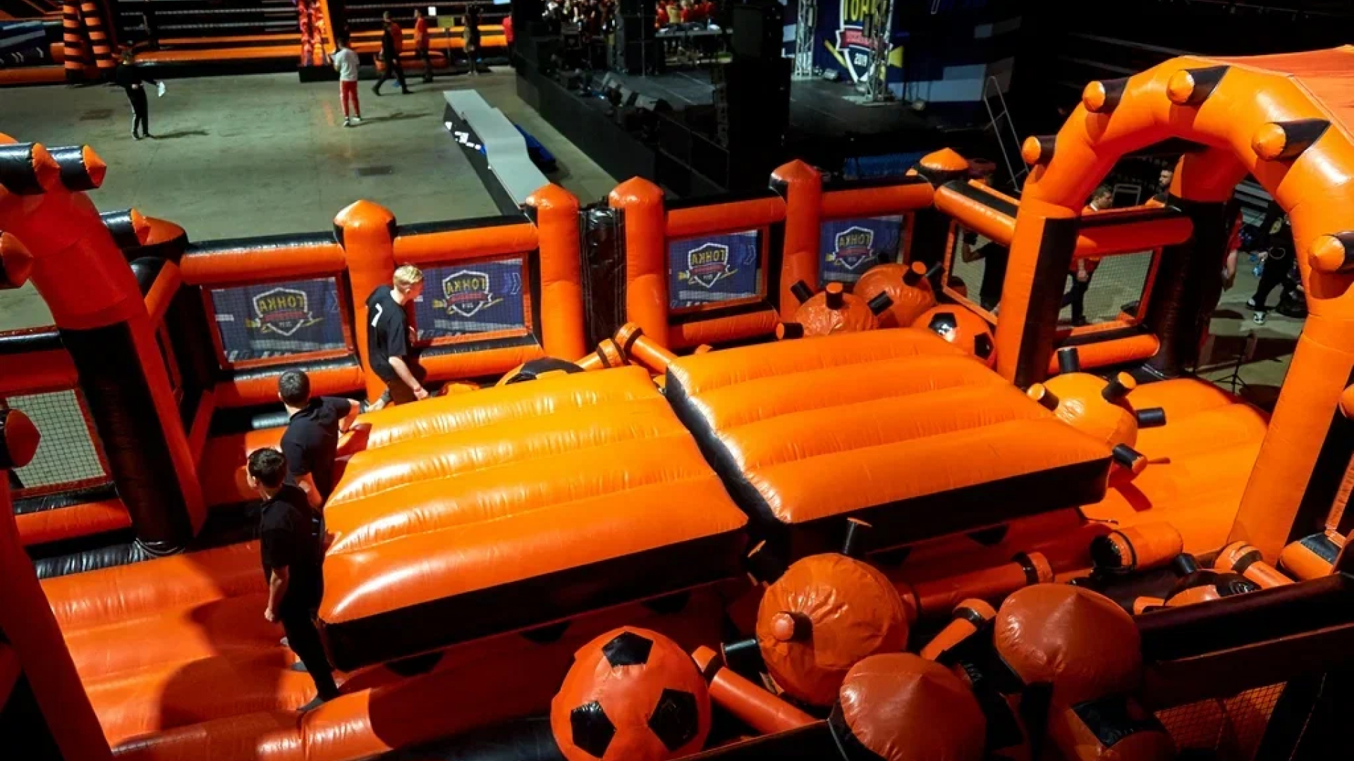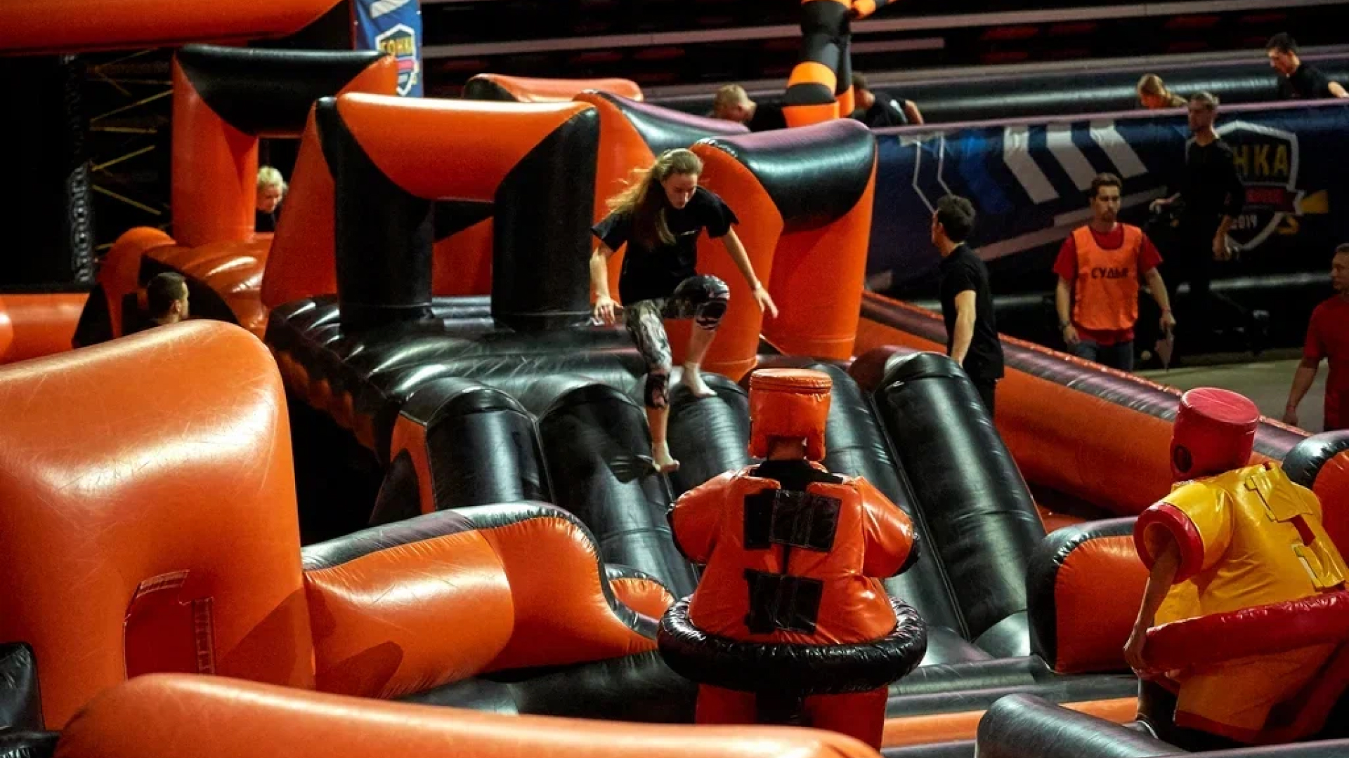 На территории спортивного комплекса разместились как фирменные надувные конструкции полосы препятствий, так и высокотехнологичные аттракционы с использованием виртуальной реальности, а также гоночные симуляторы.