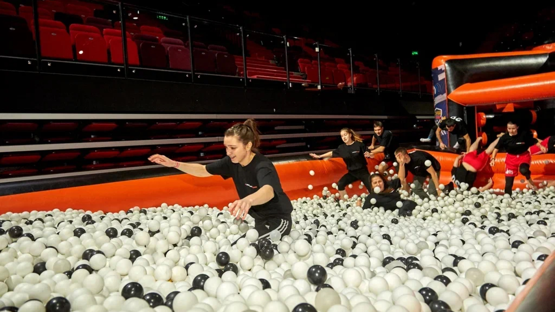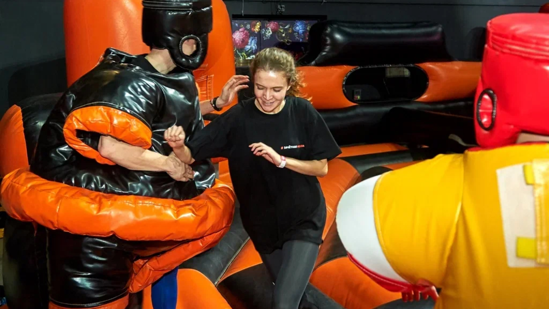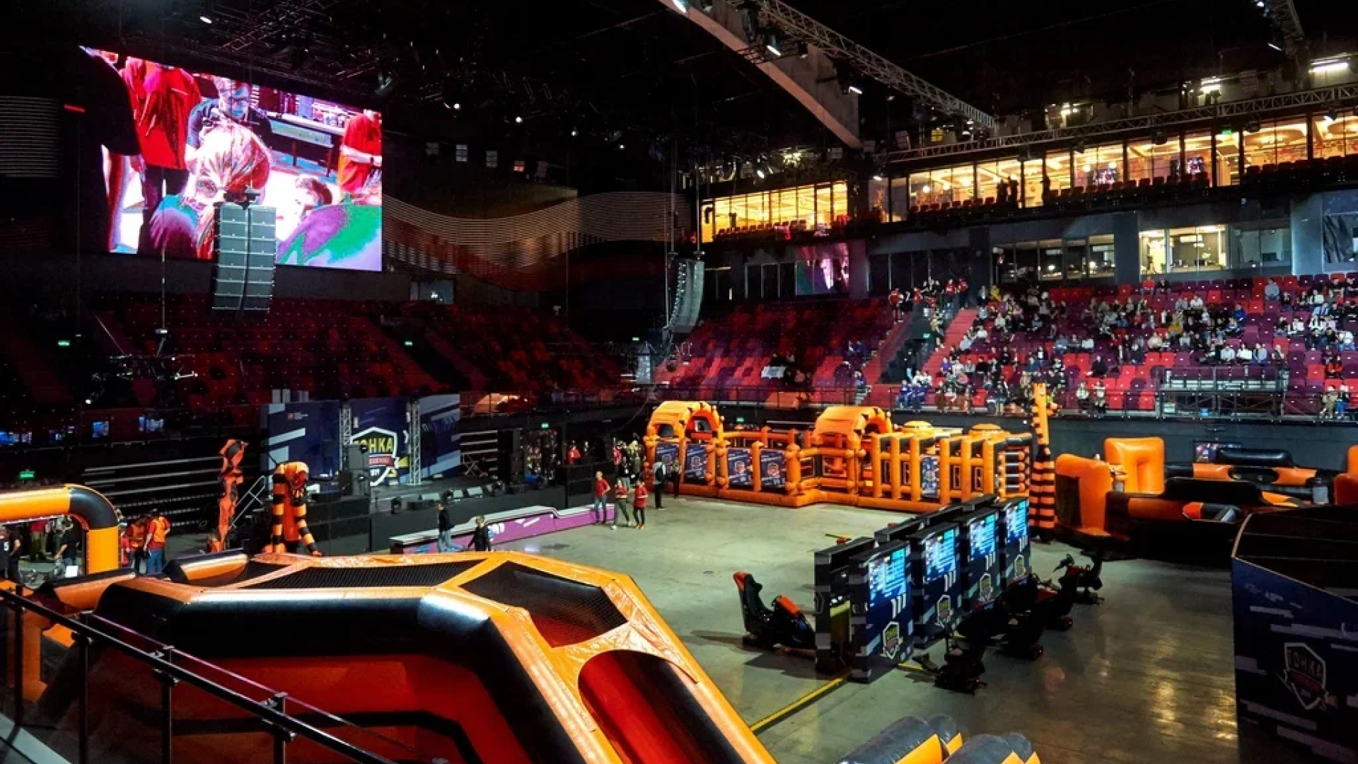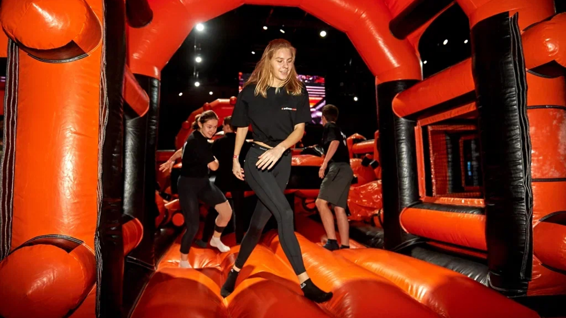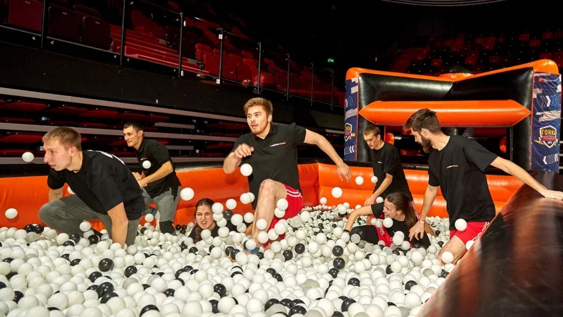 На территории спортивного комплекса разместились как фирменные надувные конструкции полосы препятствий, так и высокотехнологичные аттракционы с использованием виртуальной реальности, а также гоночные симуляторы.