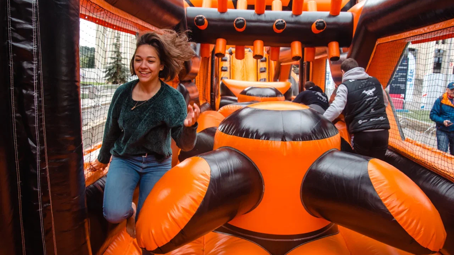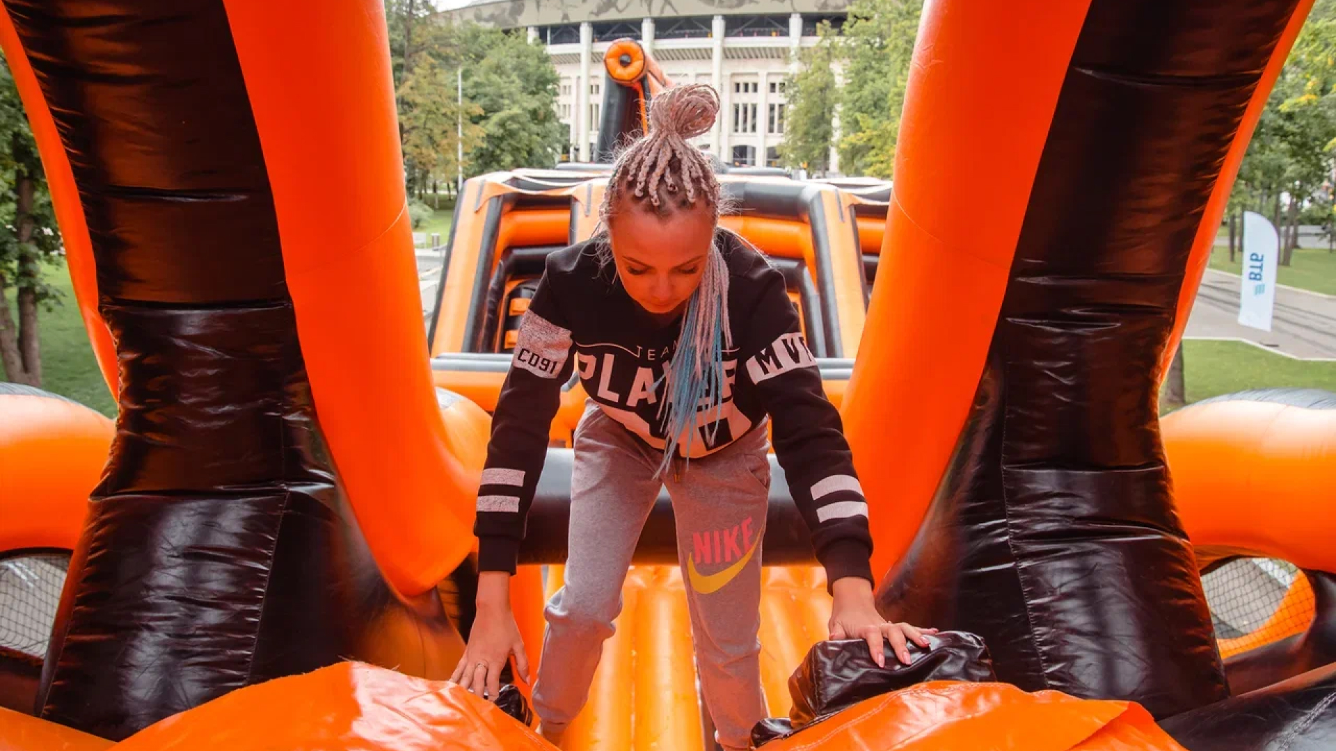 Прохождение трассы занимало несколько минут и доставляло участникам веселье и море смеха. Полоса препятствий надувная и полностью безопасная, так что любое падение не вызывает неприятных ощущений, а процесс увлекательной гонки за победой добавляет куража и вдохновляет на подвиги и свершения.