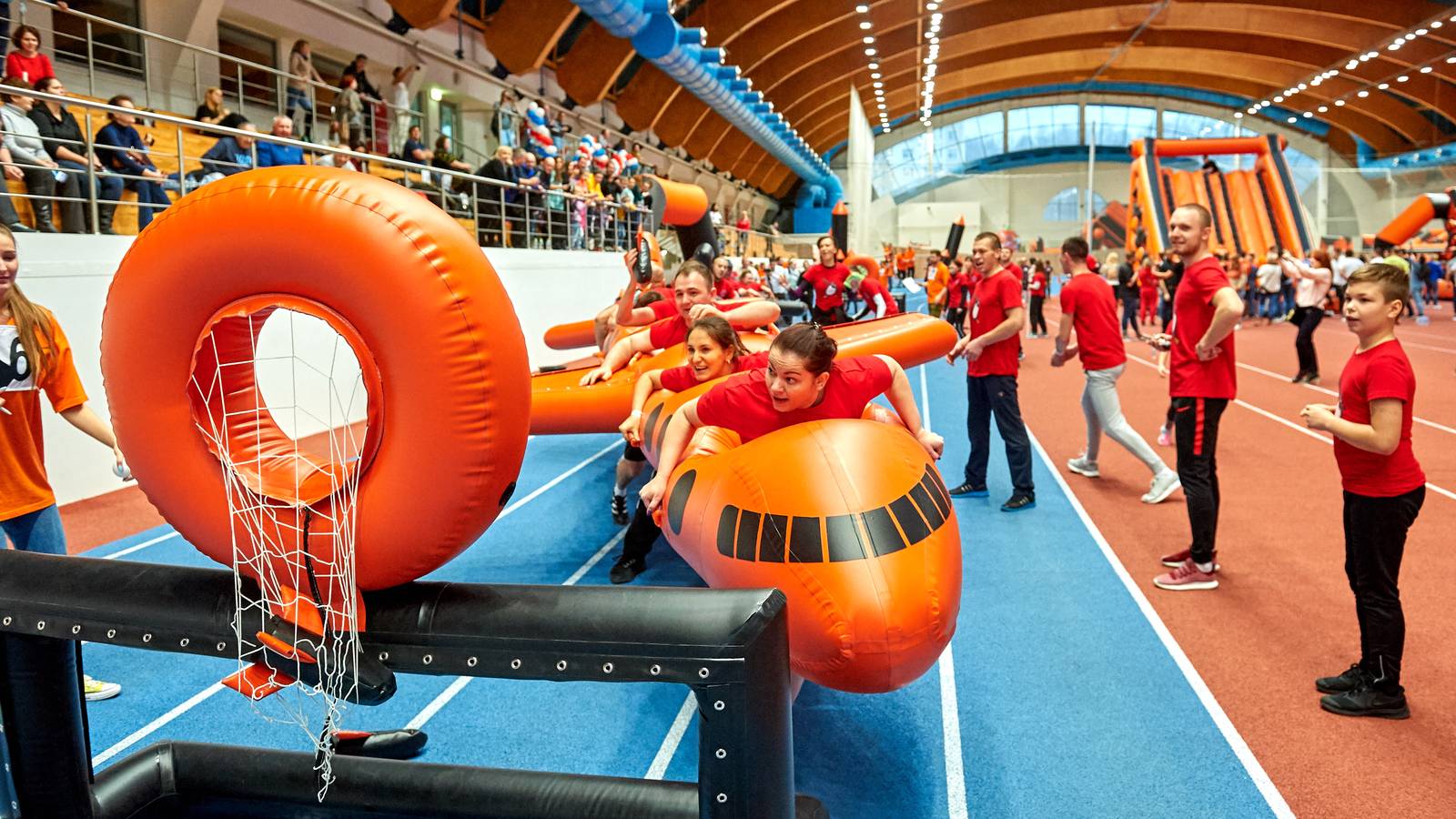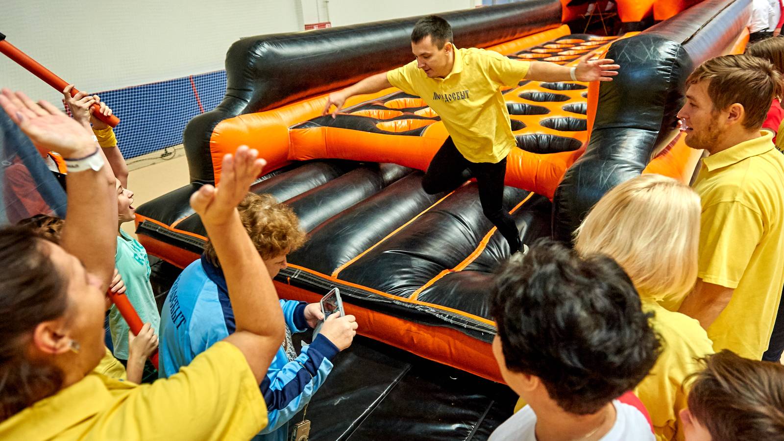 Мосводоканал особенно тщательно и внимательно относится к организации корпоративных мероприятий, особое внимание уделяя сотрудникам с детьми. Для семейных команд была проведена необычная спартакиада с использованием надувной трассы и батутов от «Вызов принят».
