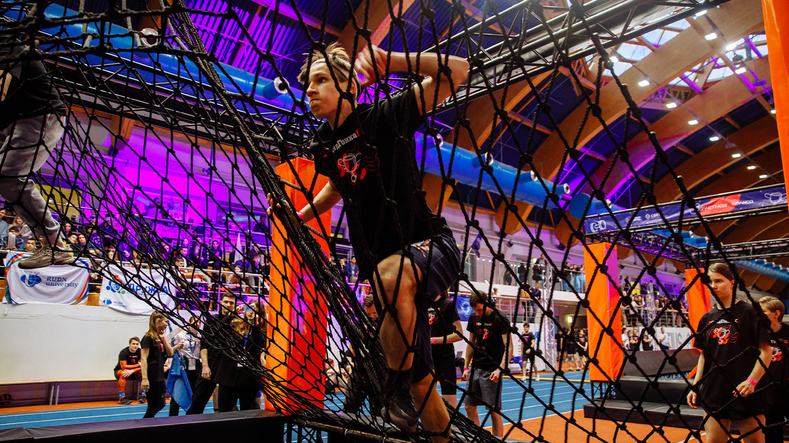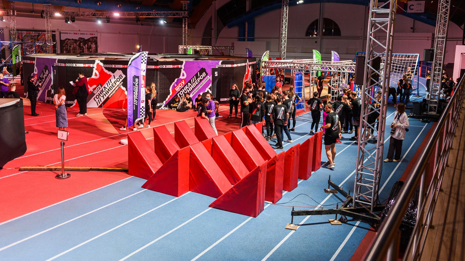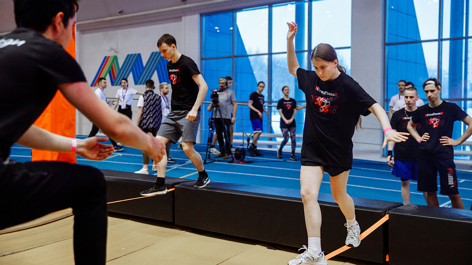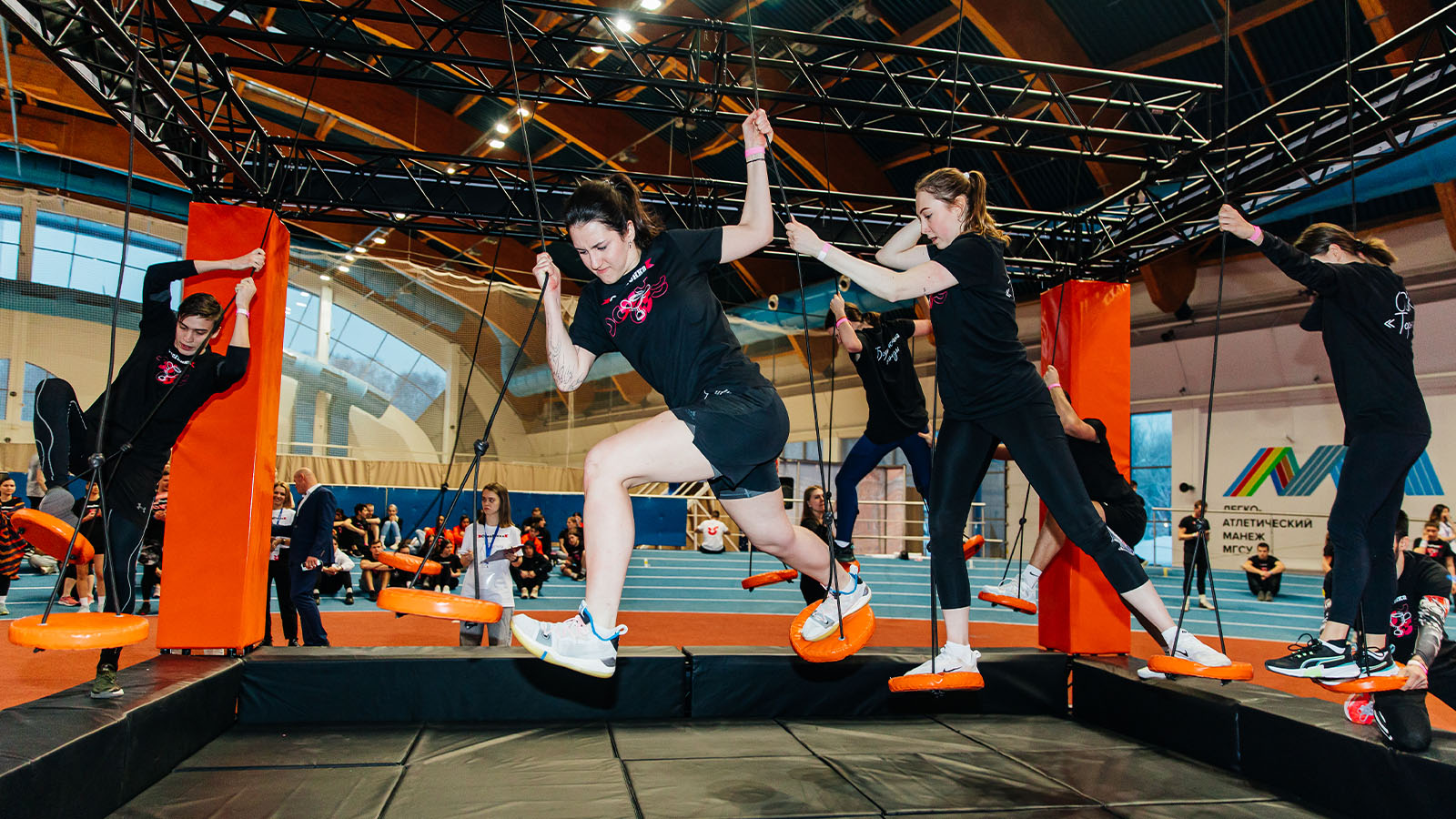Студенты, разбитые на команды, состязались между собой в прохождении полосы на время, проходя подвесные диски, гимнастические кольца и балансир. В финале их ждали «Большие гонки», где с помощью деревянных палок, нужно было преодолеть подъём на вершину импровизированной горы.
