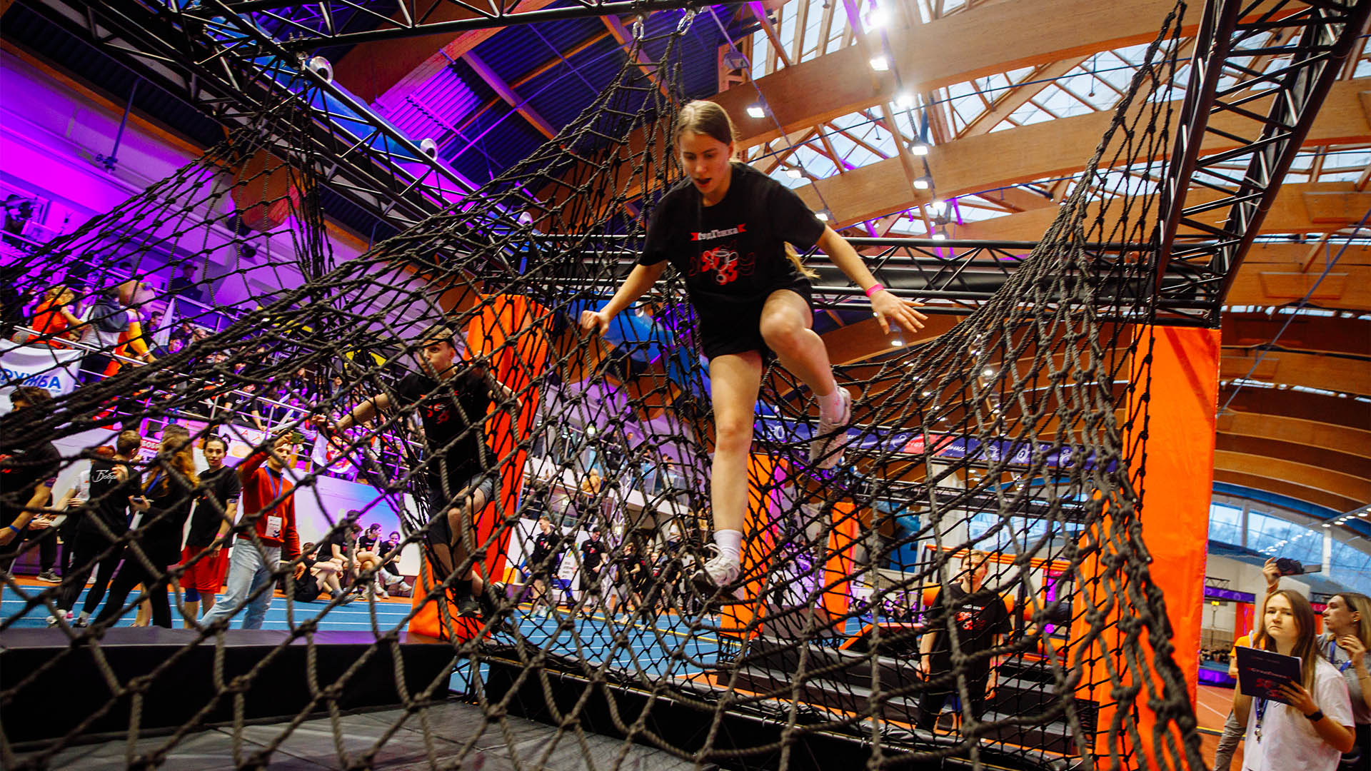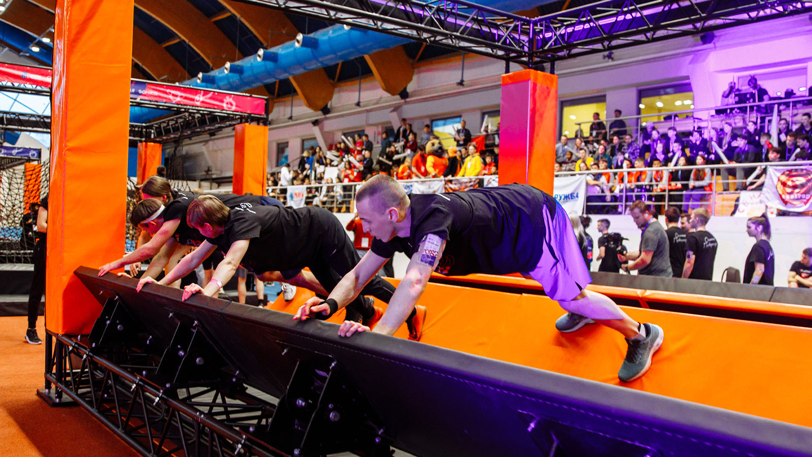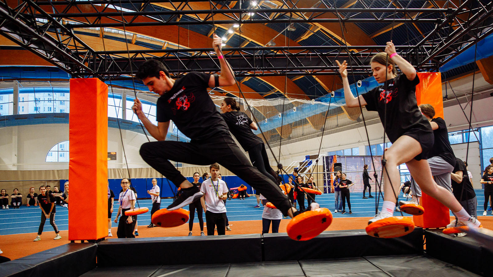 Студенты, разбитые на команды, состязались между собой в прохождении полосы на время, проходя подвесные диски, гимнастические кольца и балансир. В финале их ждали «Большие гонки», где с помощью деревянных палок, нужно было преодолеть подъём на вершину импровизированной горы.