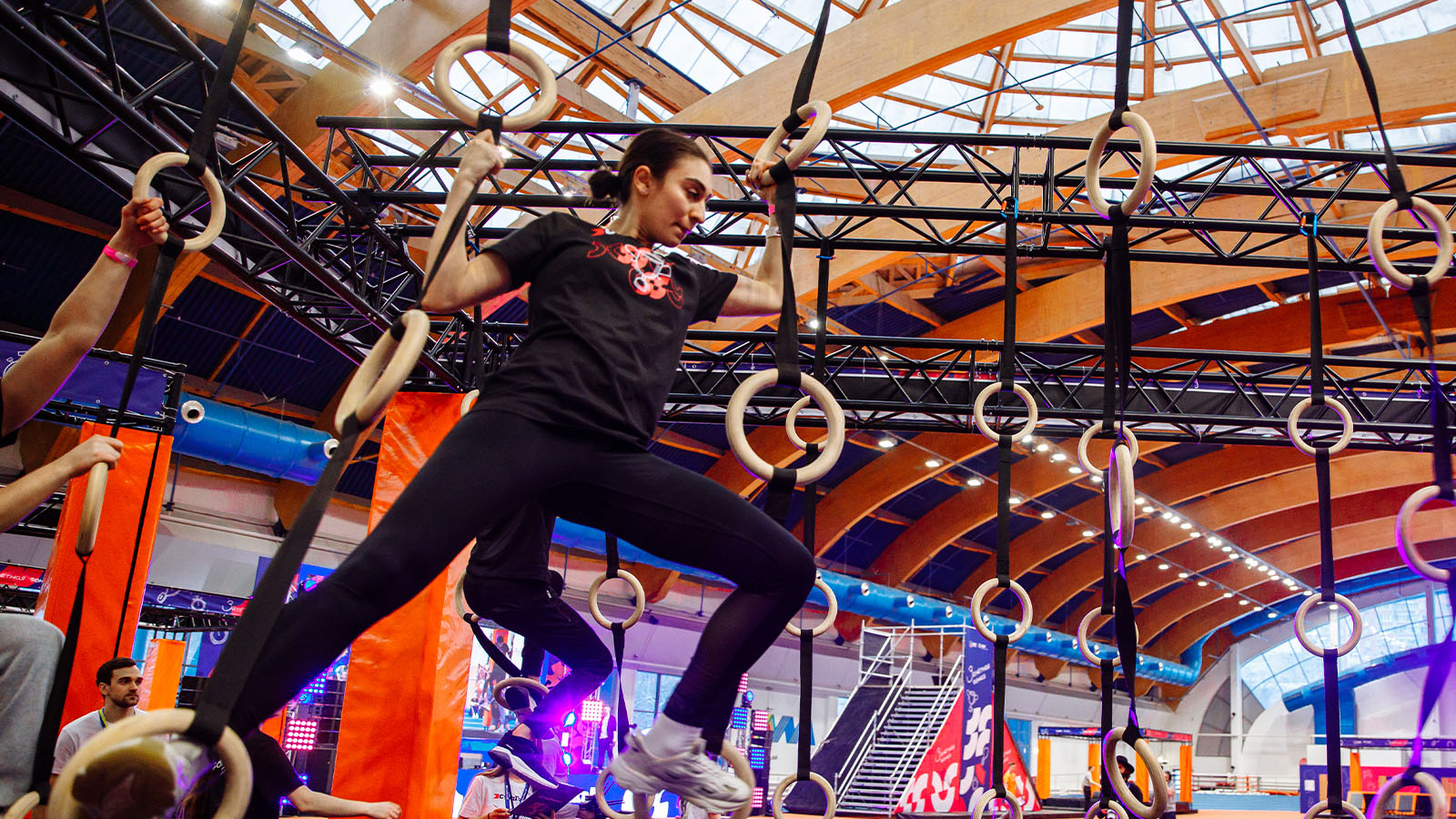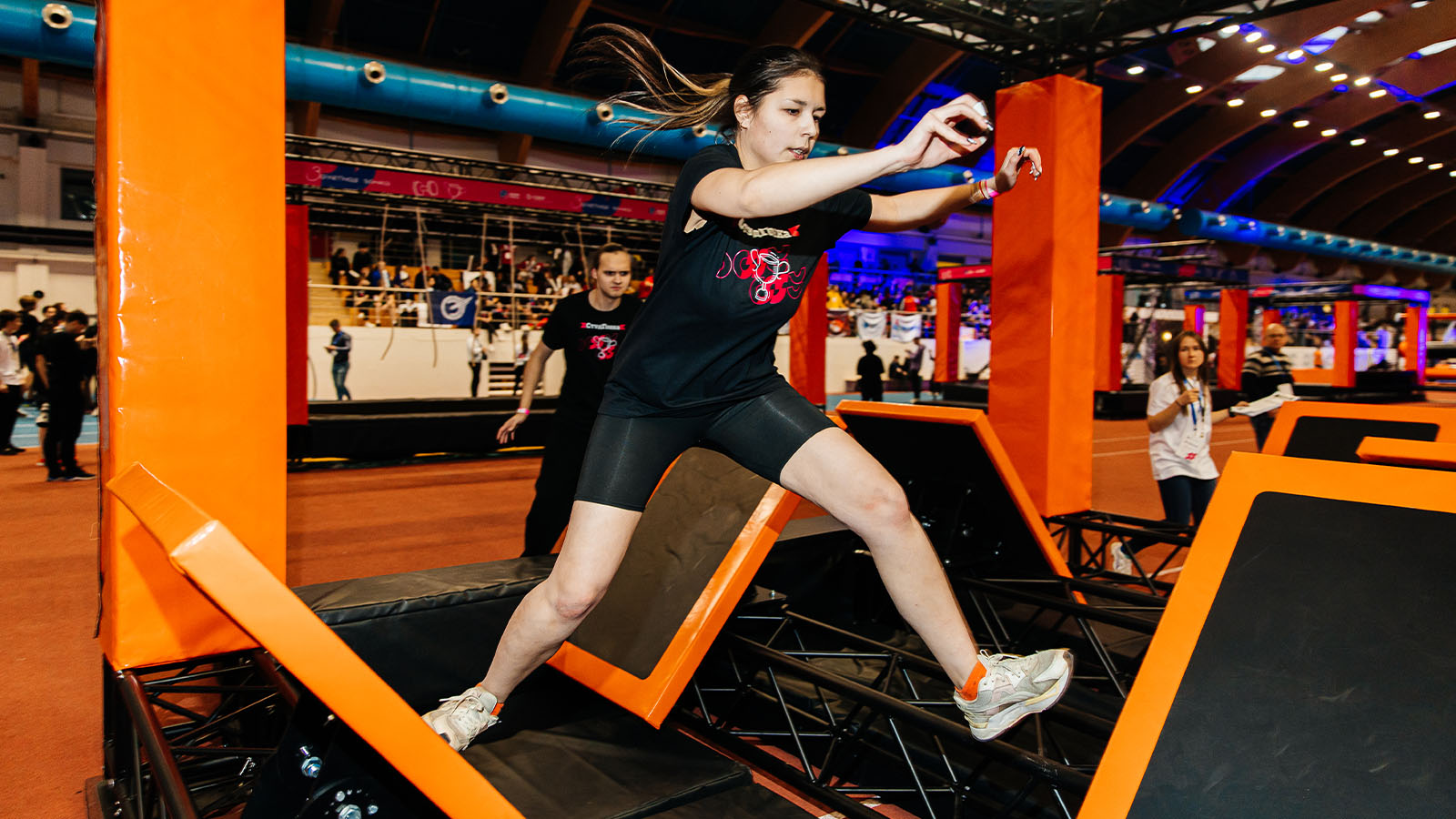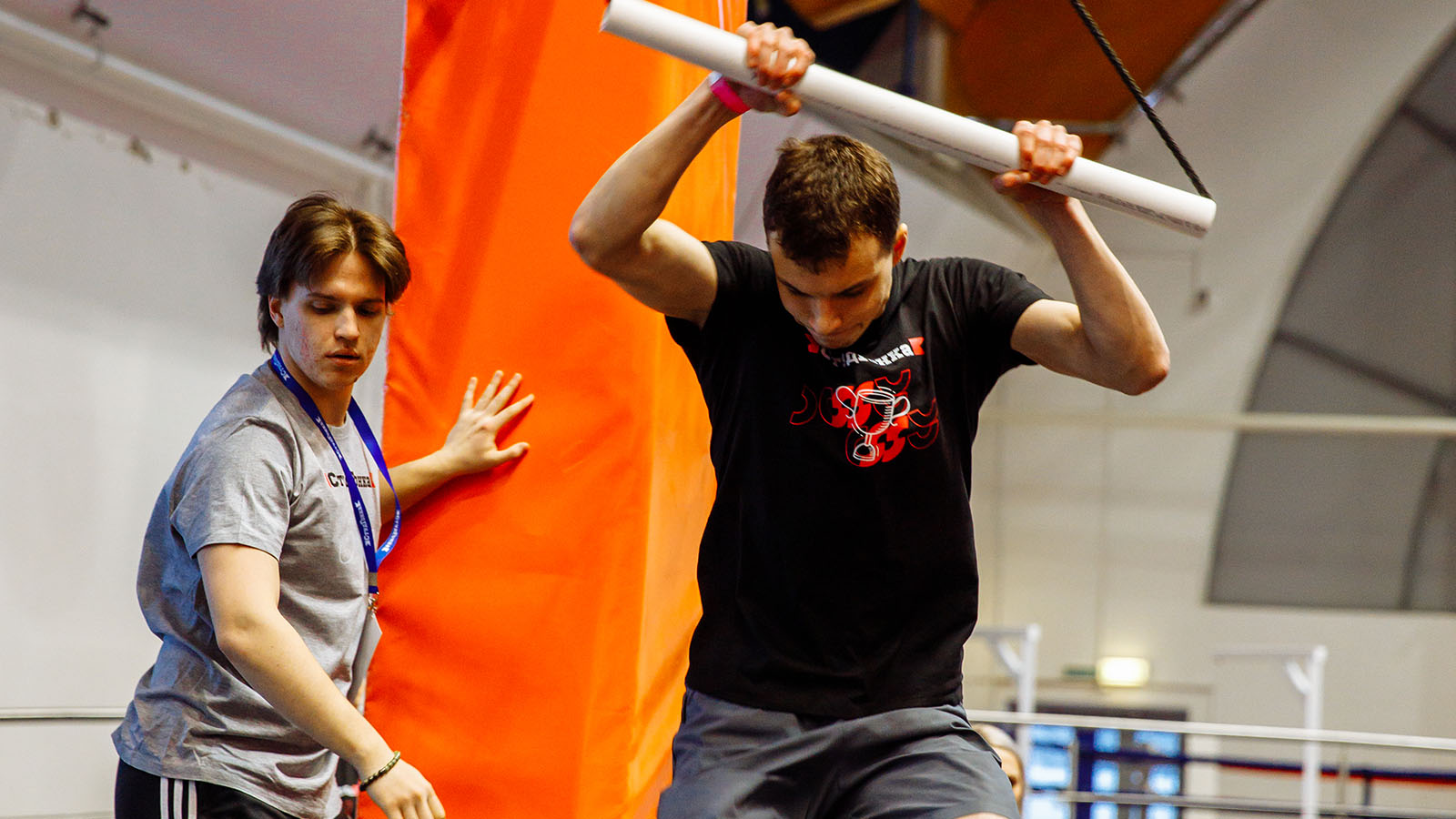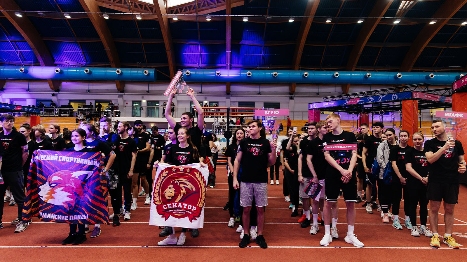 Студенты, разбитые на команды, состязались между собой в прохождении полосы на время, проходя подвесные диски, гимнастические кольца и балансир. В финале их ждали «Большие гонки», где с помощью деревянных палок, нужно было преодолеть подъём на вершину импровизированной горы.